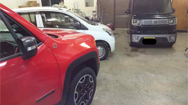 取付作業やご成約頂いた車の納車準備、メンテナンス作業いっぱい
