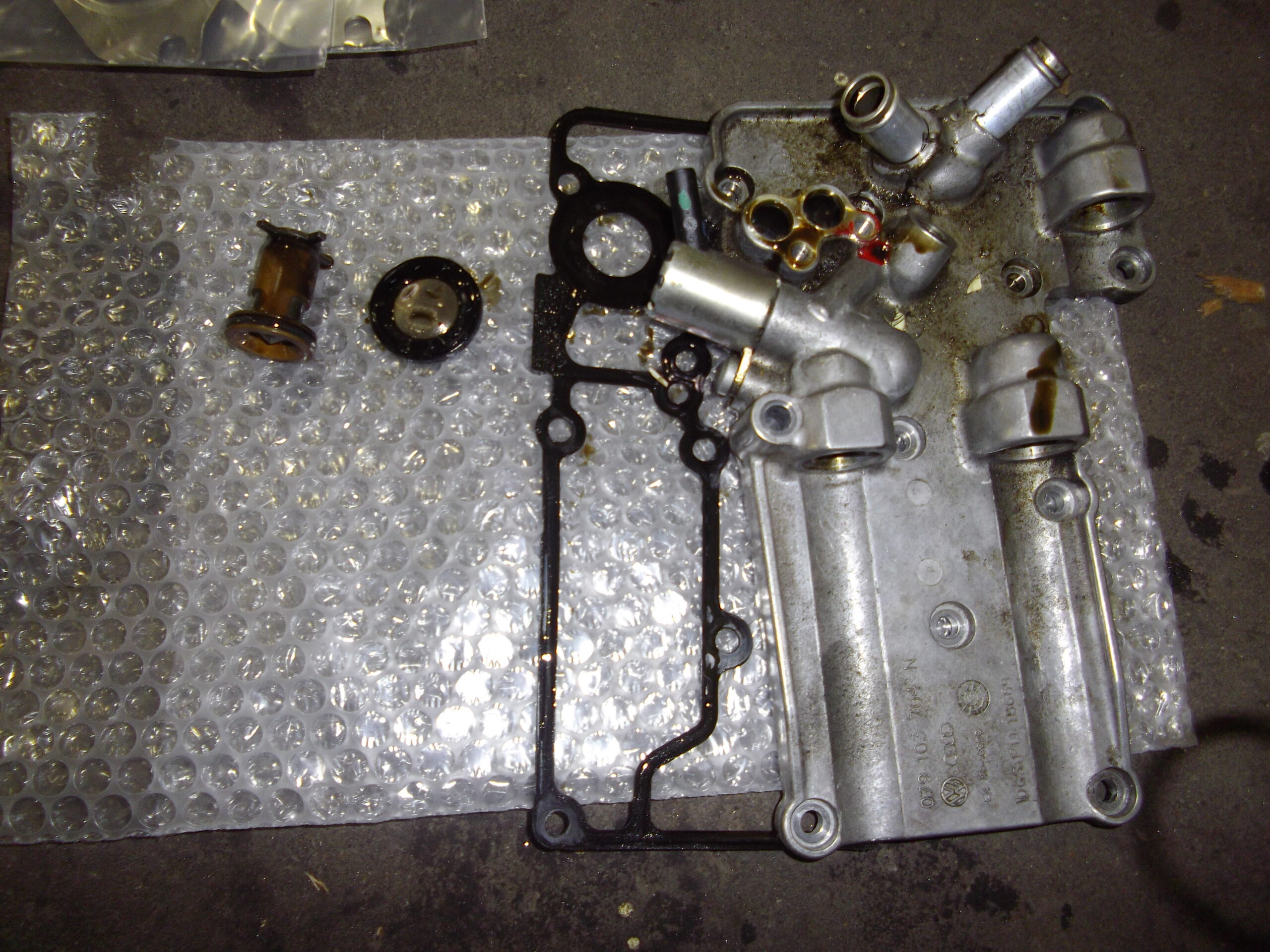 ターボチャージャー左右バンクは要交換、原因となった油路のチェックバルブ他一回交換部品を注文。