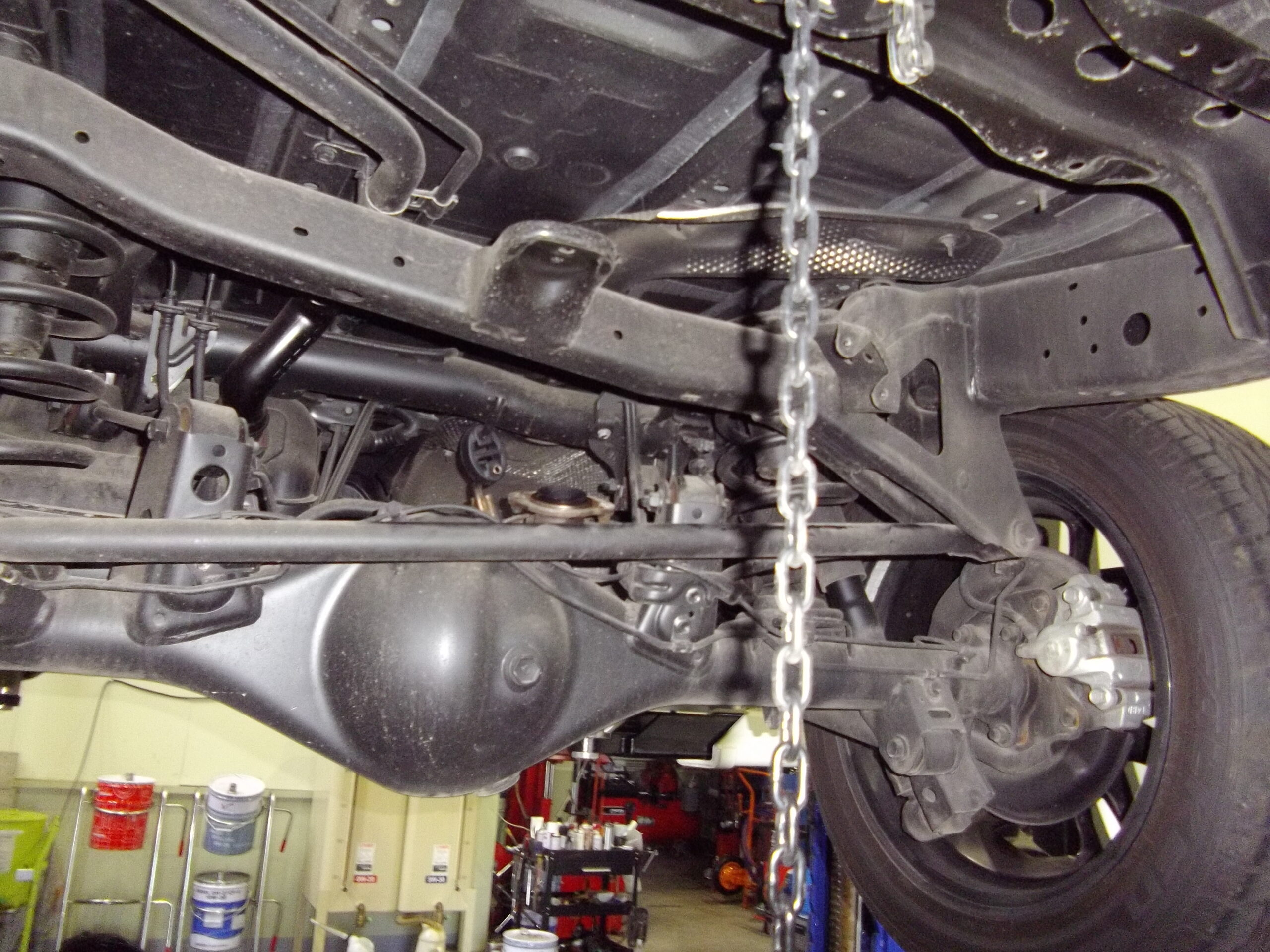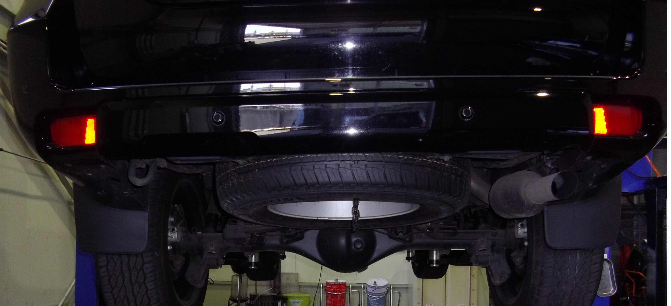 スペアタイヤを外し、