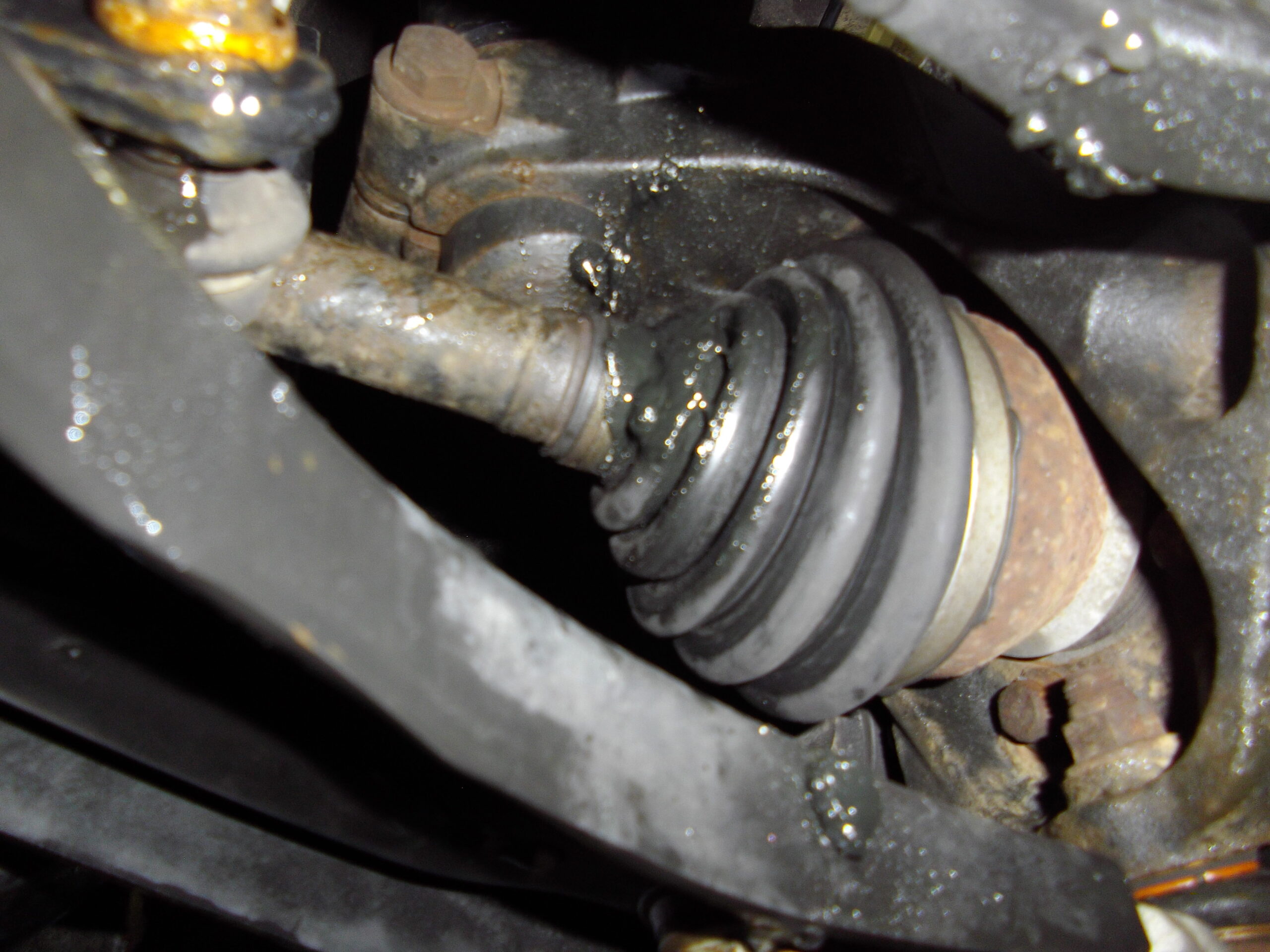 1点目、フロント右ドライブシャフトブーツアウター側がさけており、要交換