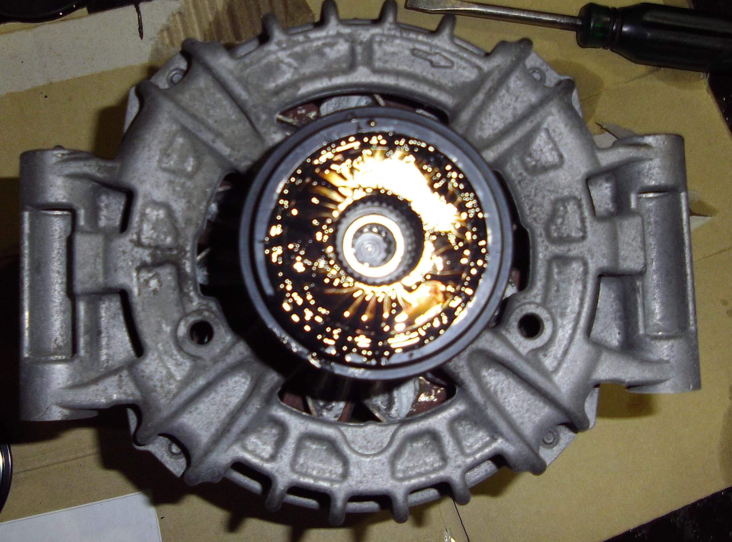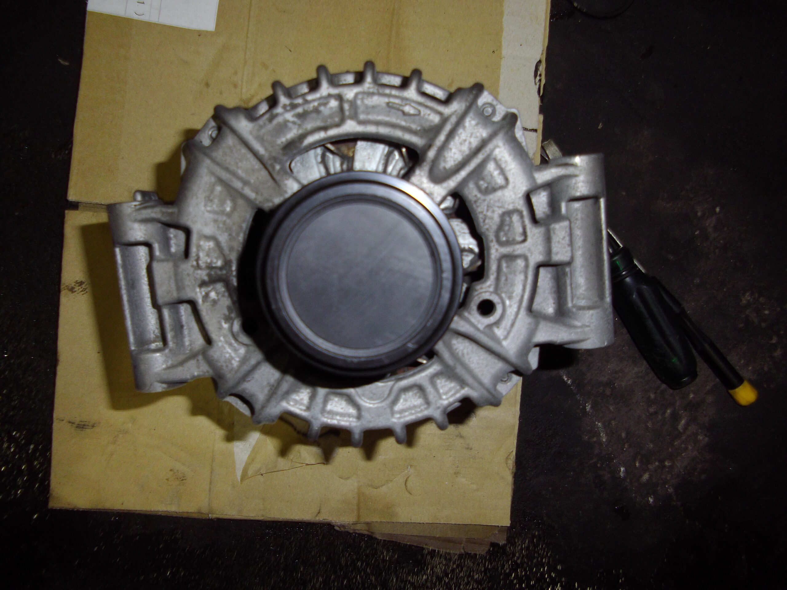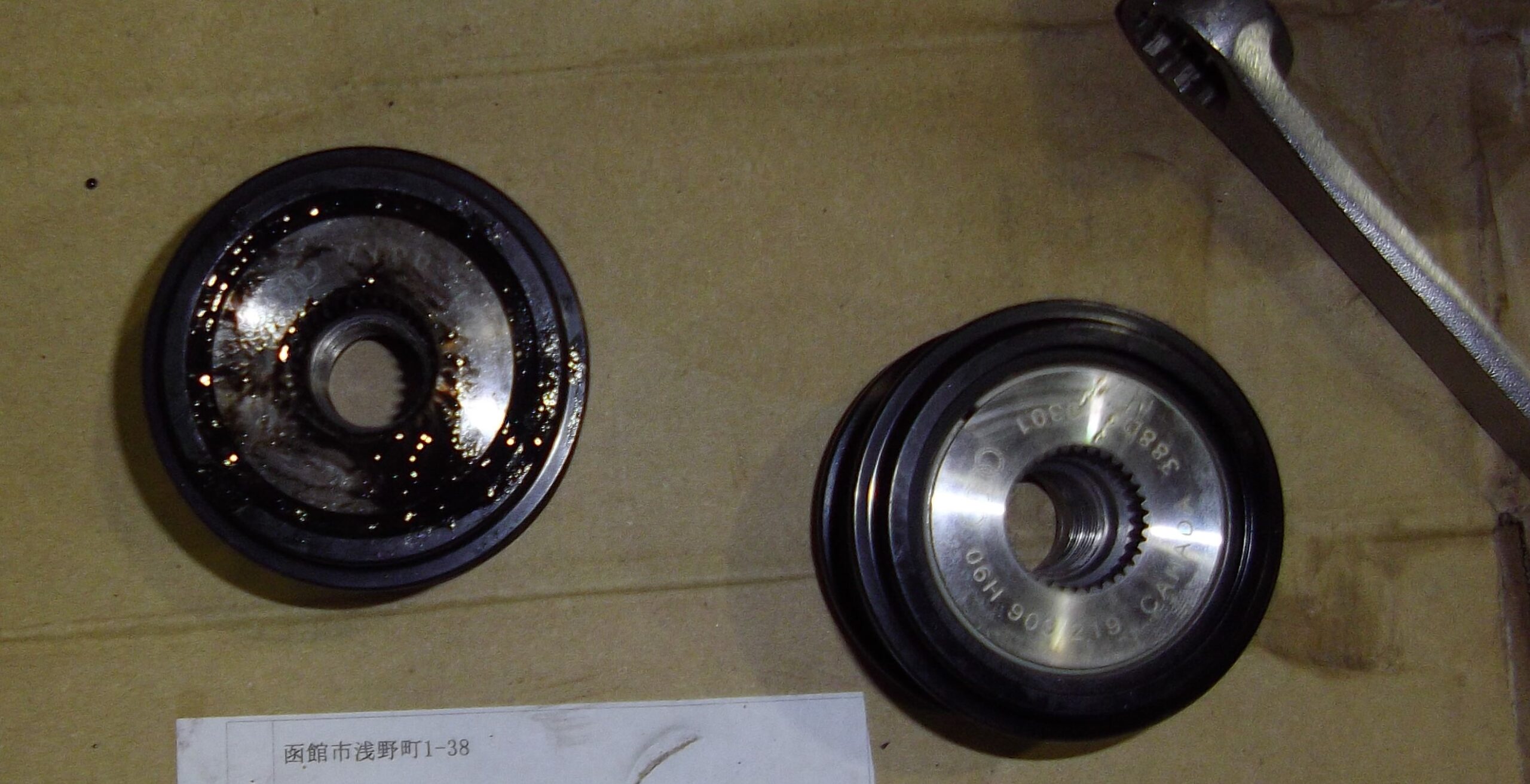 こちらはオルタネータープーリー中にベアリング内蔵でグリスが漏れてきてます>_<