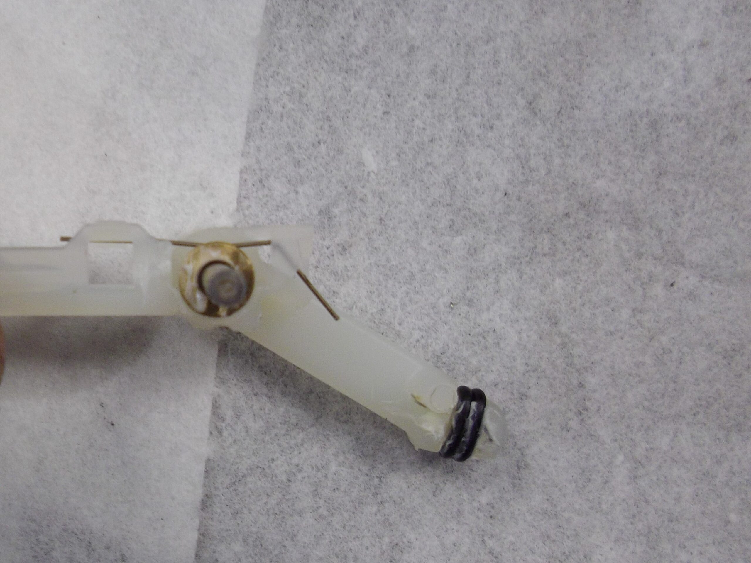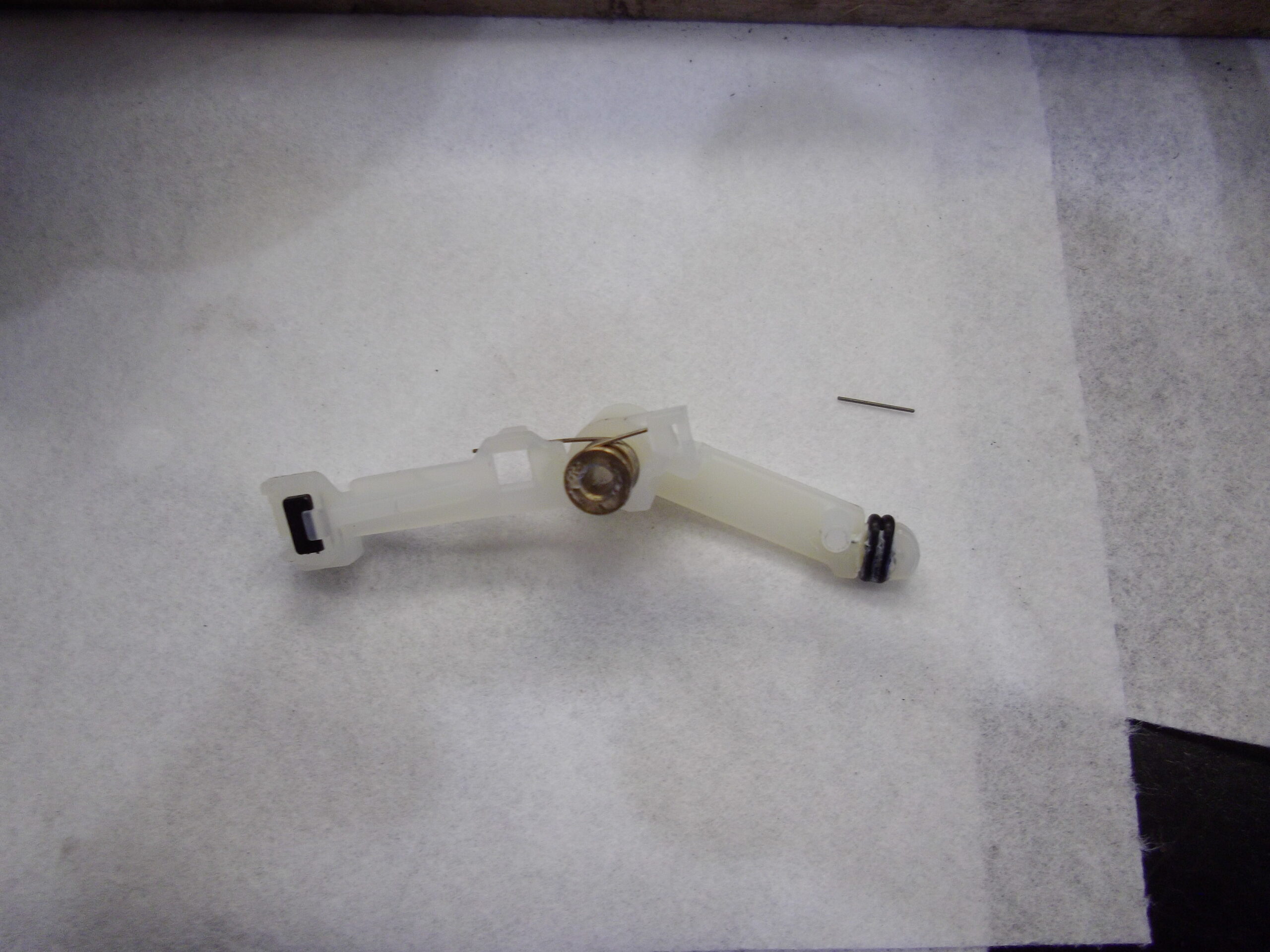 折れて支点になれず、スプリングの力で初期位置に戻れなくなり、センサーでは読み取れない中途半端な位置で止まる為、警告メッセージが出ていました>_<