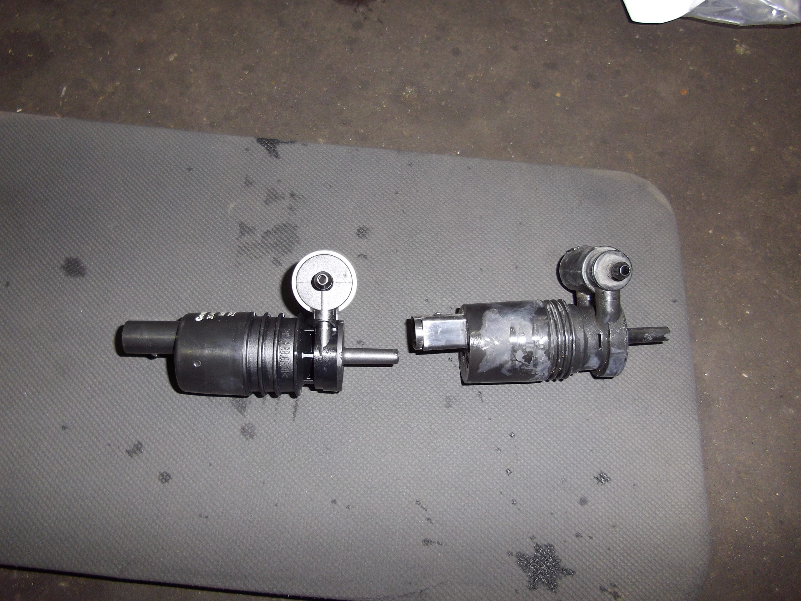 作動させるとウォッシャーポンプが動いており、作動電圧も良好 リアウォッシャーと共用のポンプでリアは正常に出ますのでポンプ内部不良と判断し交換です。