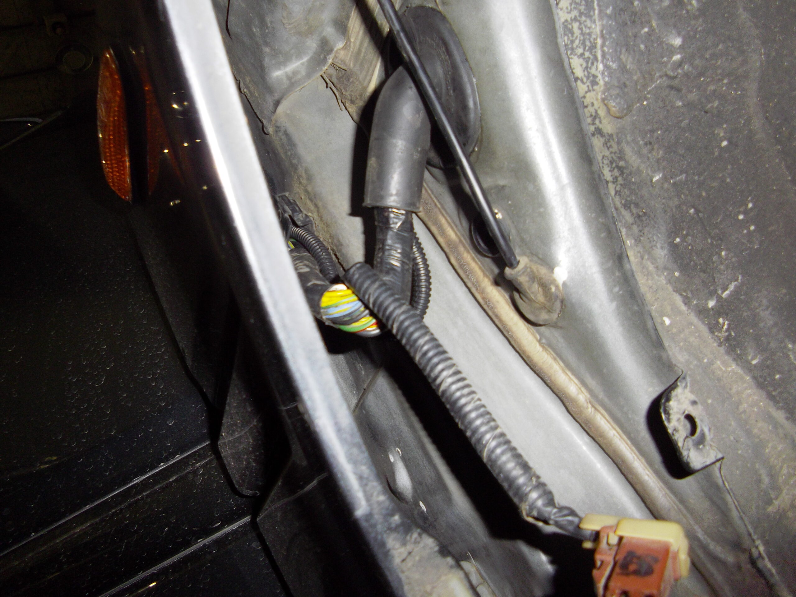 コルゲートチューブ内に配線を通し、純正配線に這わせ室内には純正配線の出入り口に通るスペースがあるのでテープを剥ぎ、加工穴あけをせず、純正配線と一緒に室内へ♪(´▽`)