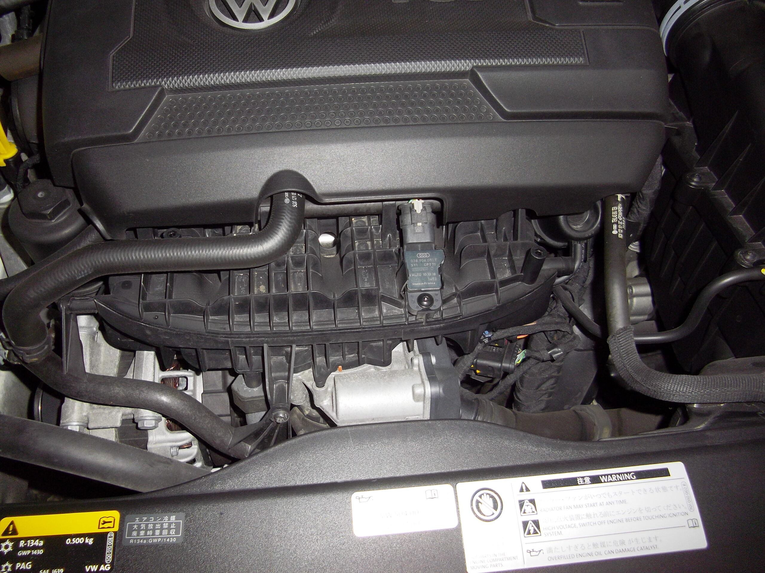 この全く見えませんが、インテークマニホールドの真下エンジン横にくっついています。