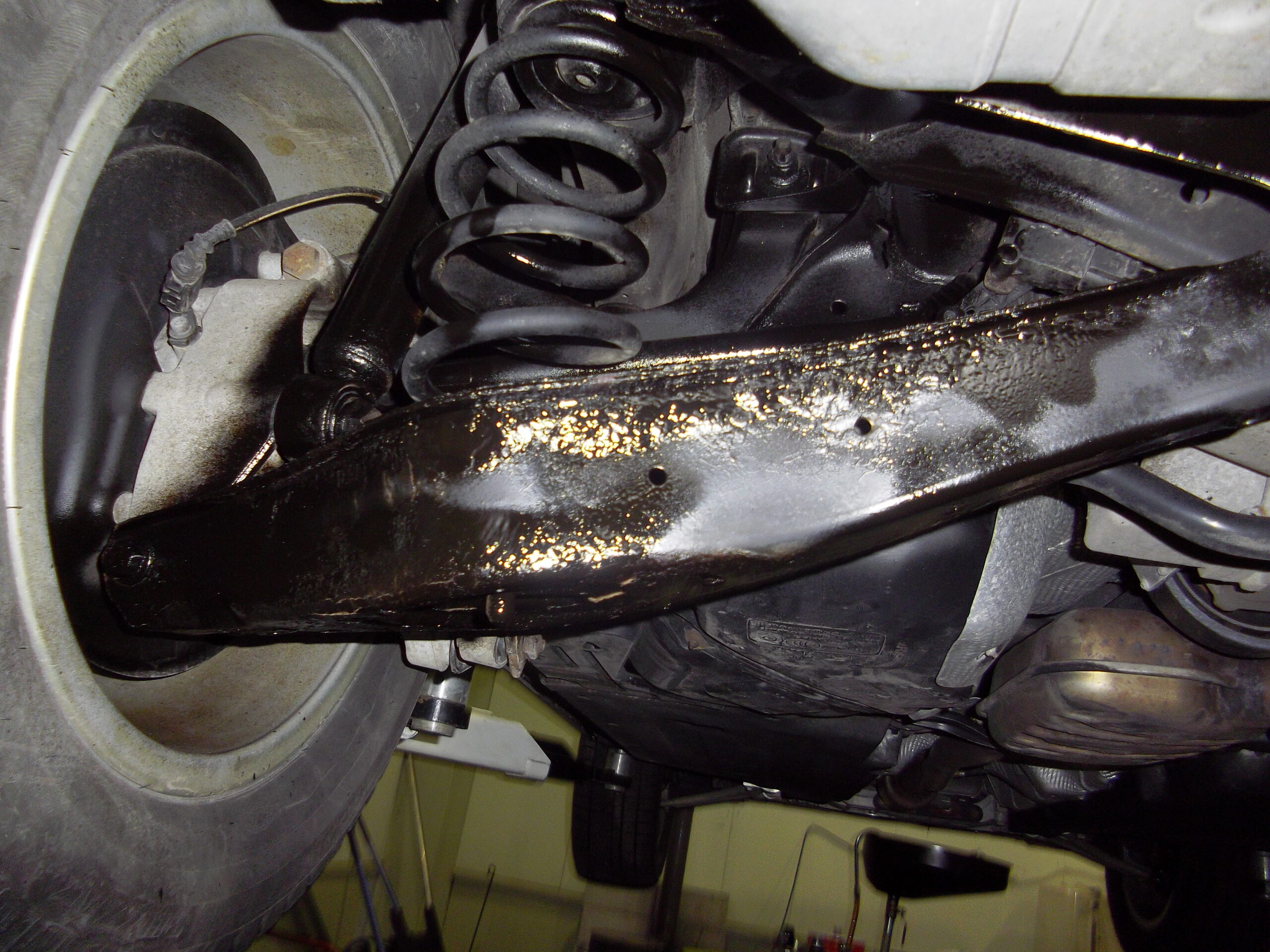 リアがほとんどスチール製のアーム、メンバー等使用している為、腐食の激しい所のみ防錆剤を散布致しました。一度錆びると防錆しても錆が浮いてきますので、一番いいのが新車時に塗るのがよろしいかと思います^_^