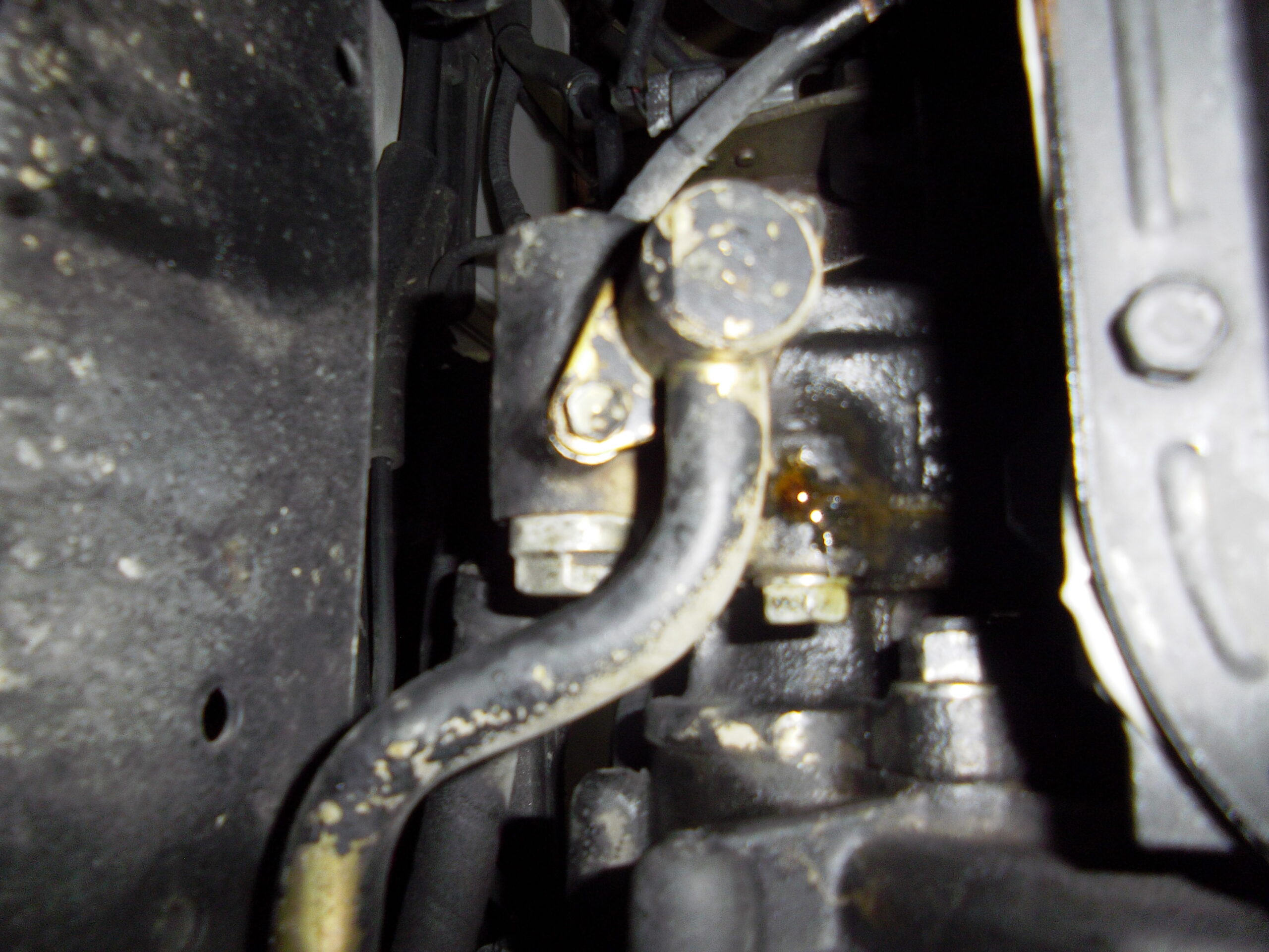 点検すると、ハンドルをすえ切りし油圧がかかった時にパワーステアリングポンプ合わせ面より、漏れを確認できました(☆▽☆)
