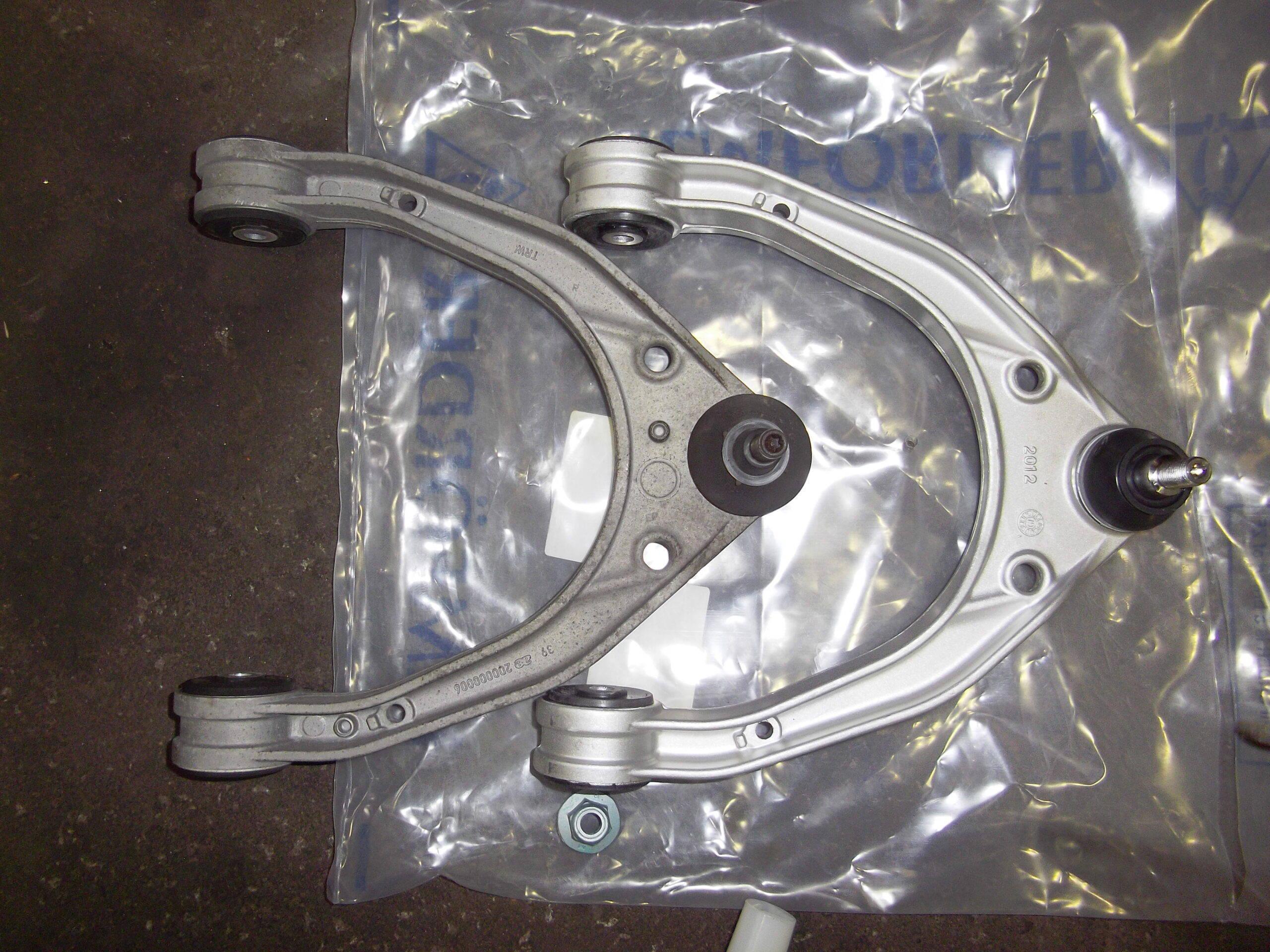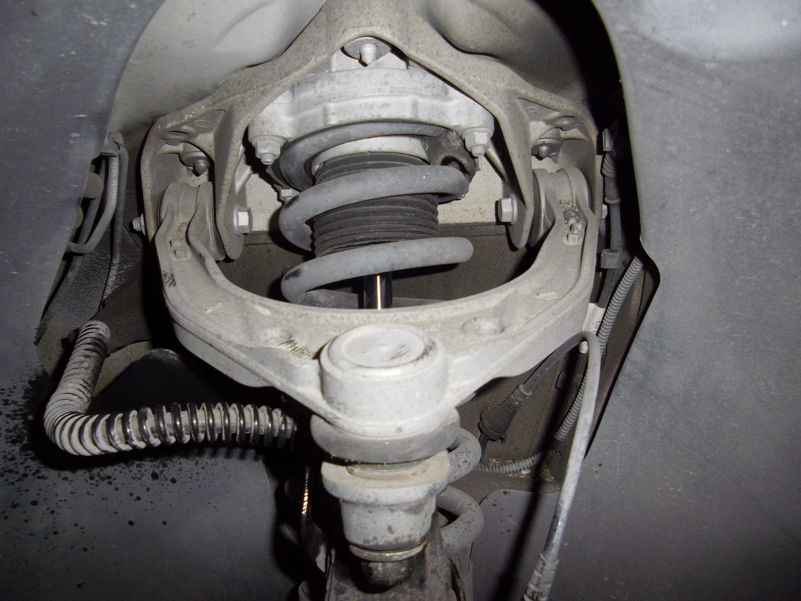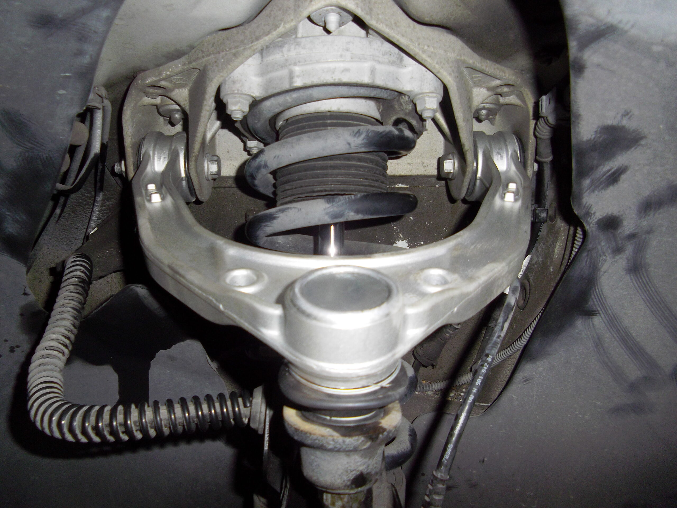 フロント右アッパーアームのボールジョイントにガタつきが有りアームASSYの交換です。