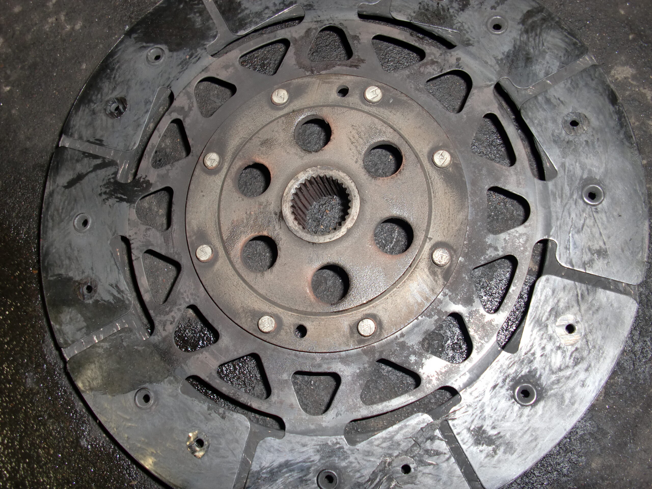 ディスクの摩耗材が減って剥離し砕け散って鉄板むき出し(;´༎ຶД༎ຶ`)