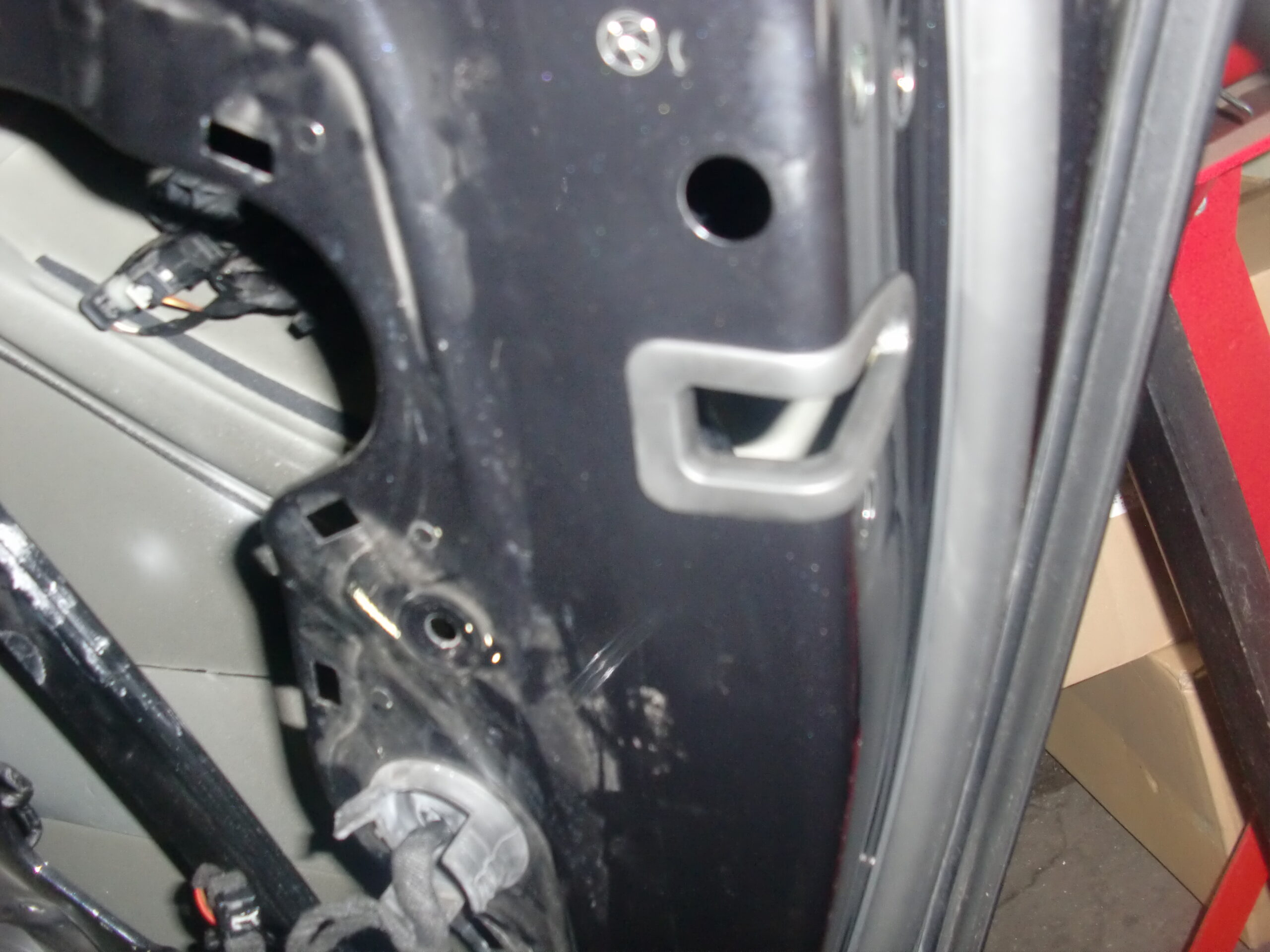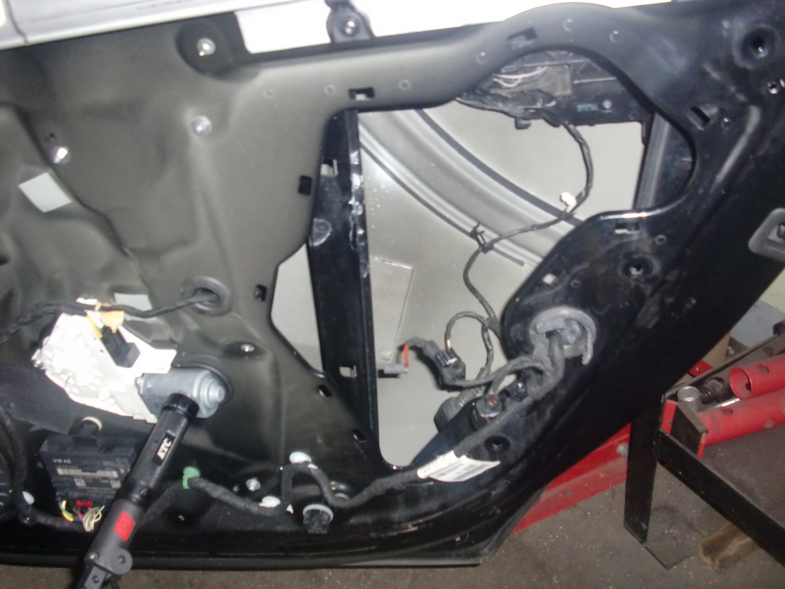 内張外してカバーを外すのですが、半ドアでも閉めるオートクロージャーが付いているのでワイヤーとコネクターも外し他のコネクターも外しカバーを外します。