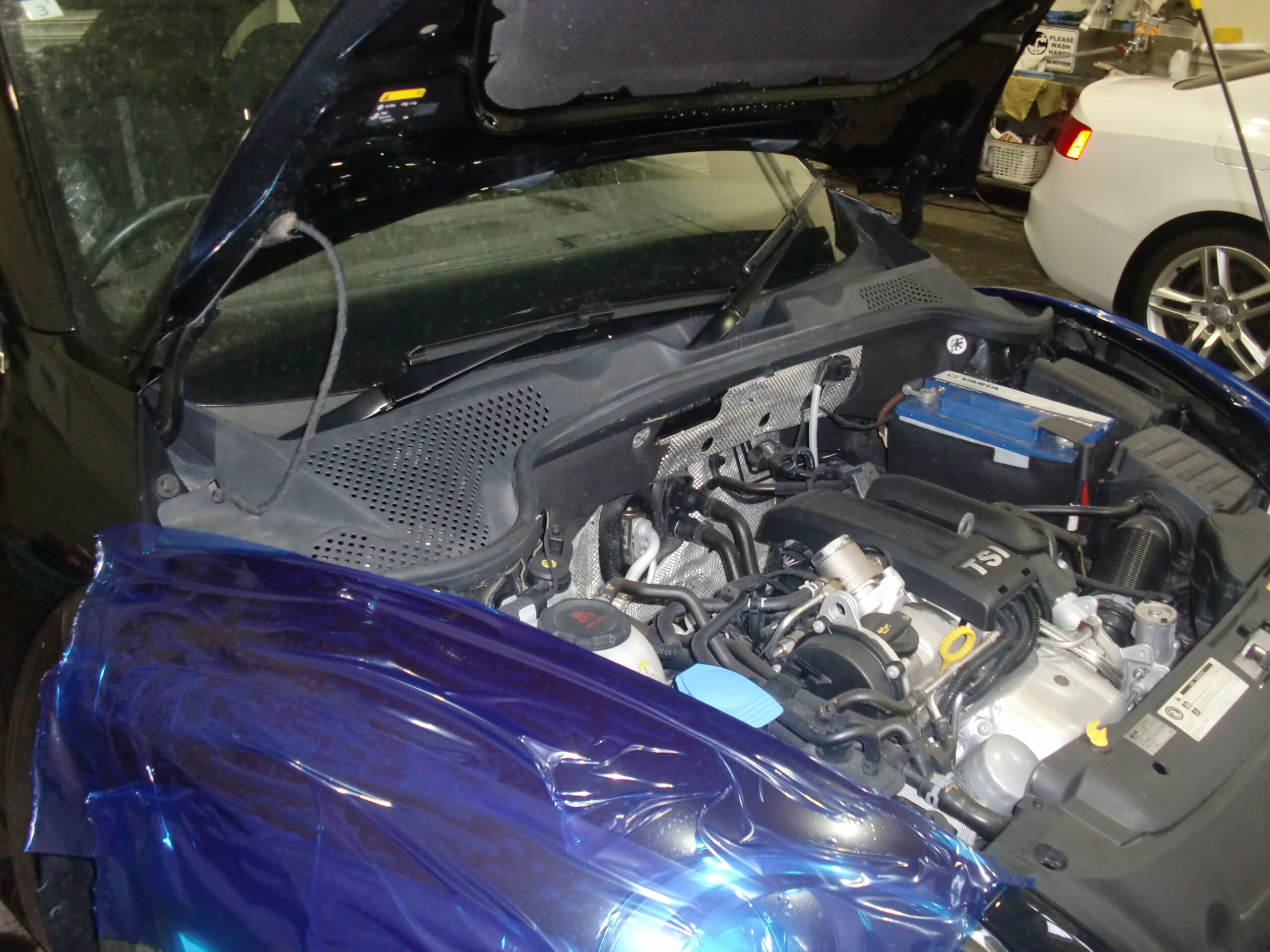 ビートルは、カウルパネル分割式で外しやすいですが気をつけなければフロントガラスを割っちゃうので慎重にやさしく外します。