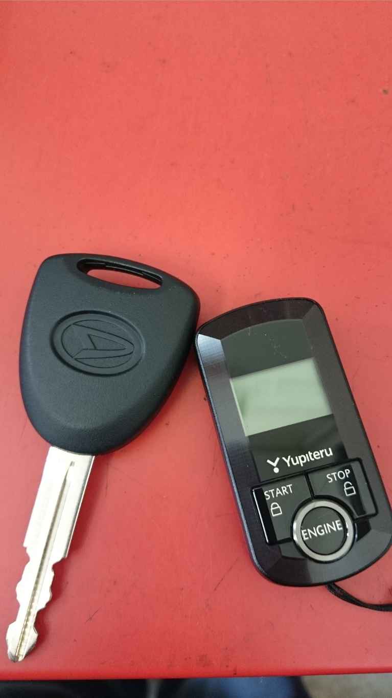 現行ミライースのキーフリーシステム無し車(簡単に言うとプッシュスタートでは無く、鍵を挿してエンジンをかけるタイプの車両)はユピテルなどの社外メーカーだと適合が出ておらず、現状では純正品のエンジンスターターを取り付けるしかないのです💦