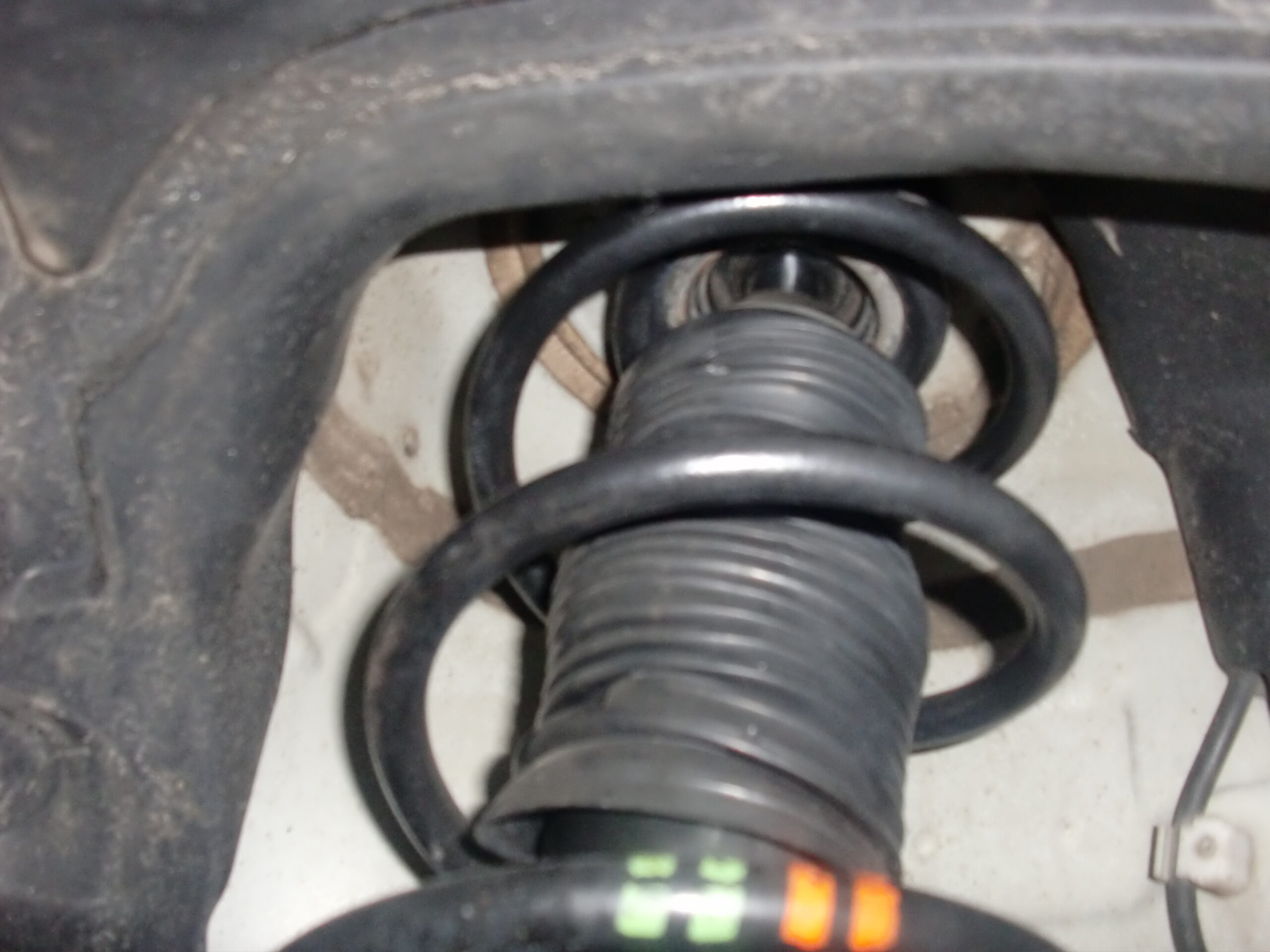 アッパーマウント側はスプリングが細くなっていおり、その下で折れアッパーマウントの外形よりスプリングの内径が大きい為、突き抜けボディに干渉してすごい音が発生しておりました。
