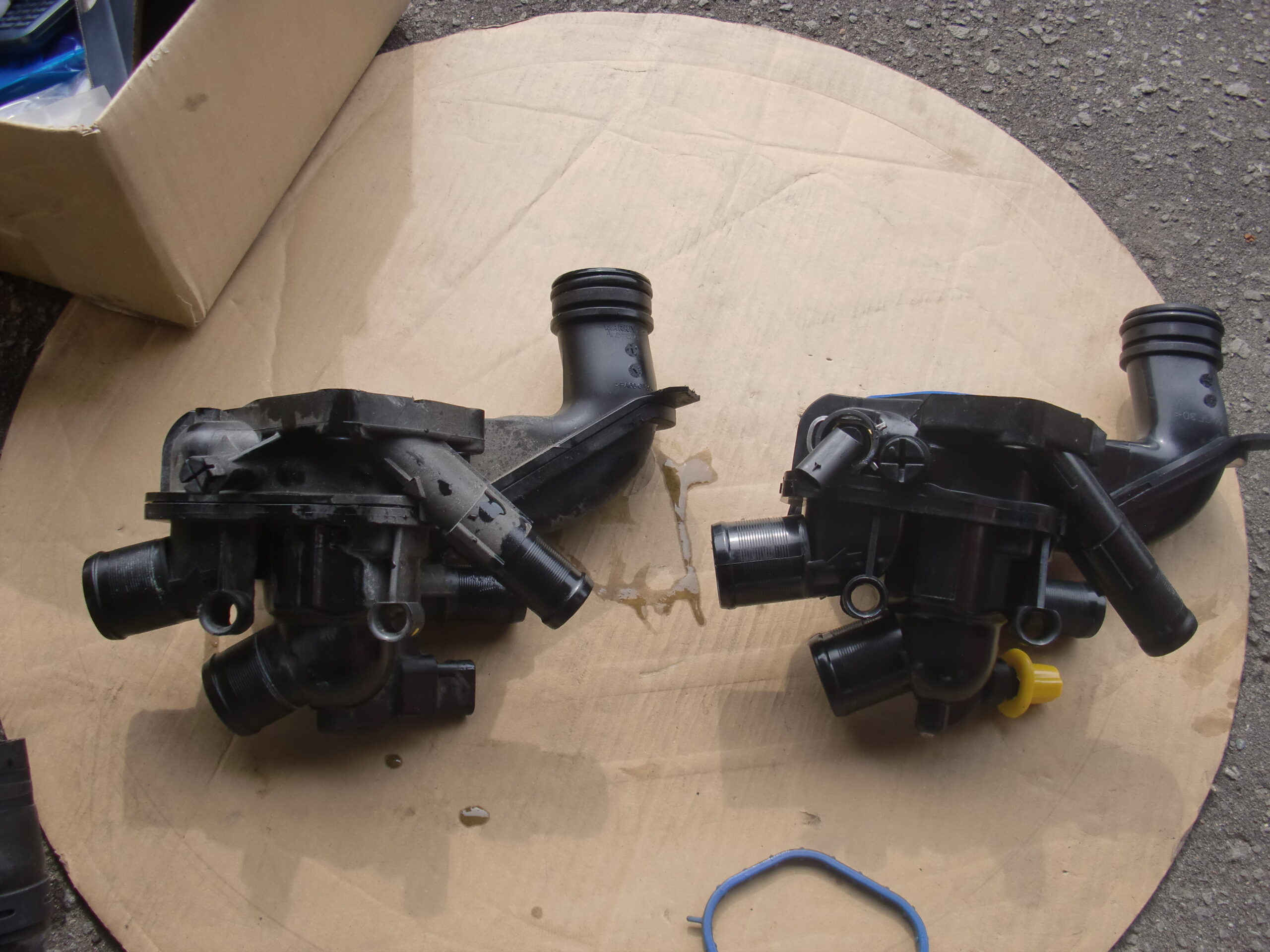 ホースとサーモスタットハウジングと延長配線がセット交換が必要となり、一式用意し交換です。