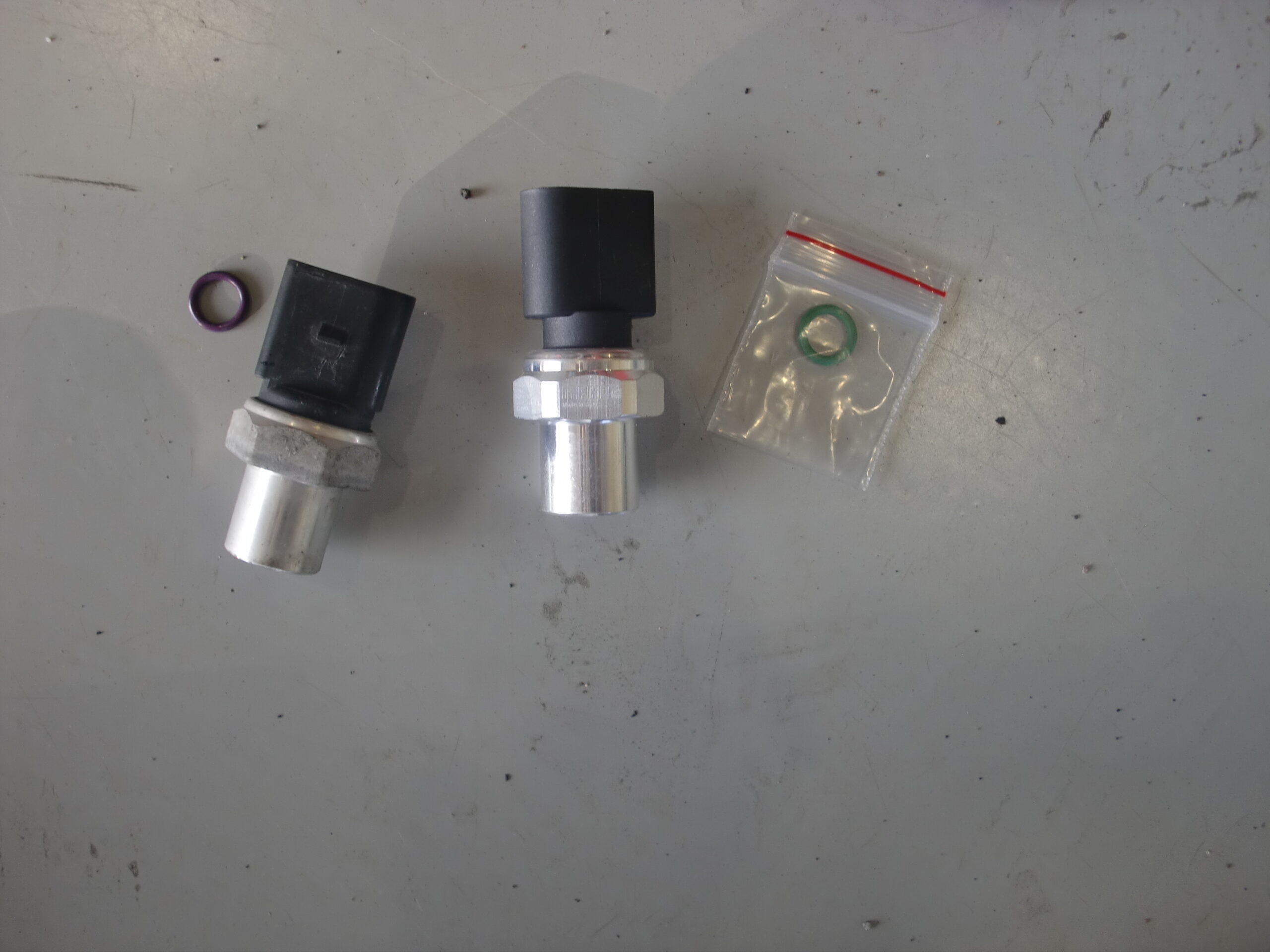 一番やっかいなのが、センサーがコンデンサーに付いているタイプで、腐食して固着していると外れず、無理に回すとコンデンサーの付け根がちぎれてしまうことがあります。その場合はコンデンサーも同時交換になってしまいます(;´д`)ゞ