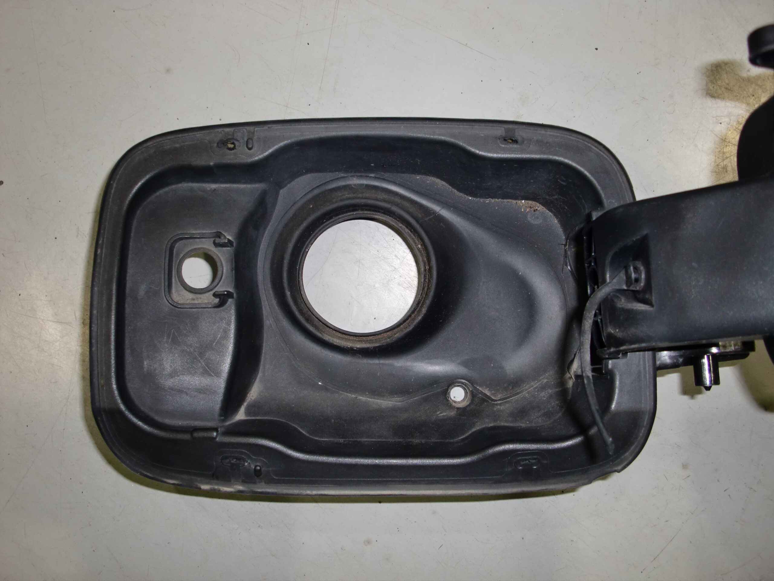 ロックモーターはフューエルリッドの裏側に取り付けられており、通常はフューエルリッドを壊さなければ取り外しができません。そのため、固定している4か所の爪付近に穴を開け、そこから爪を外して取り外しました。