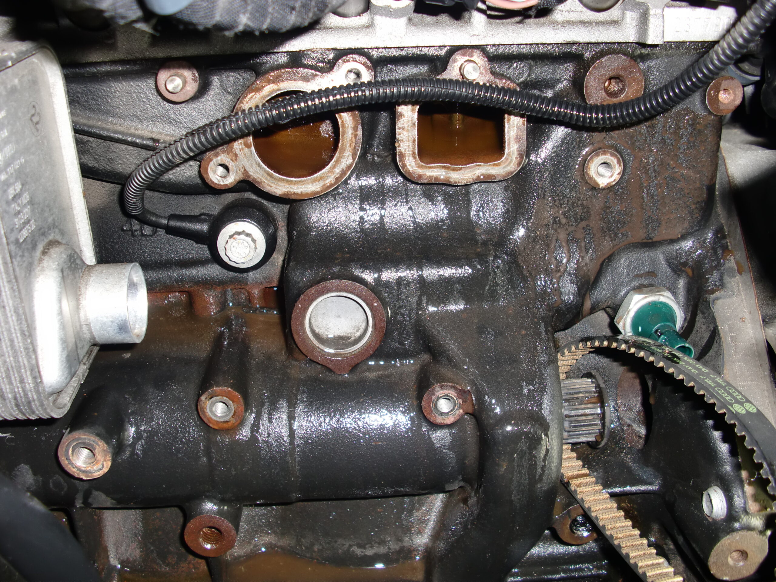 作業に伴い、ベルトと再使用不可のスプロケット取付ボルトを新品に交換し、あわせてシリンダーブロックの取付面を清掃します。