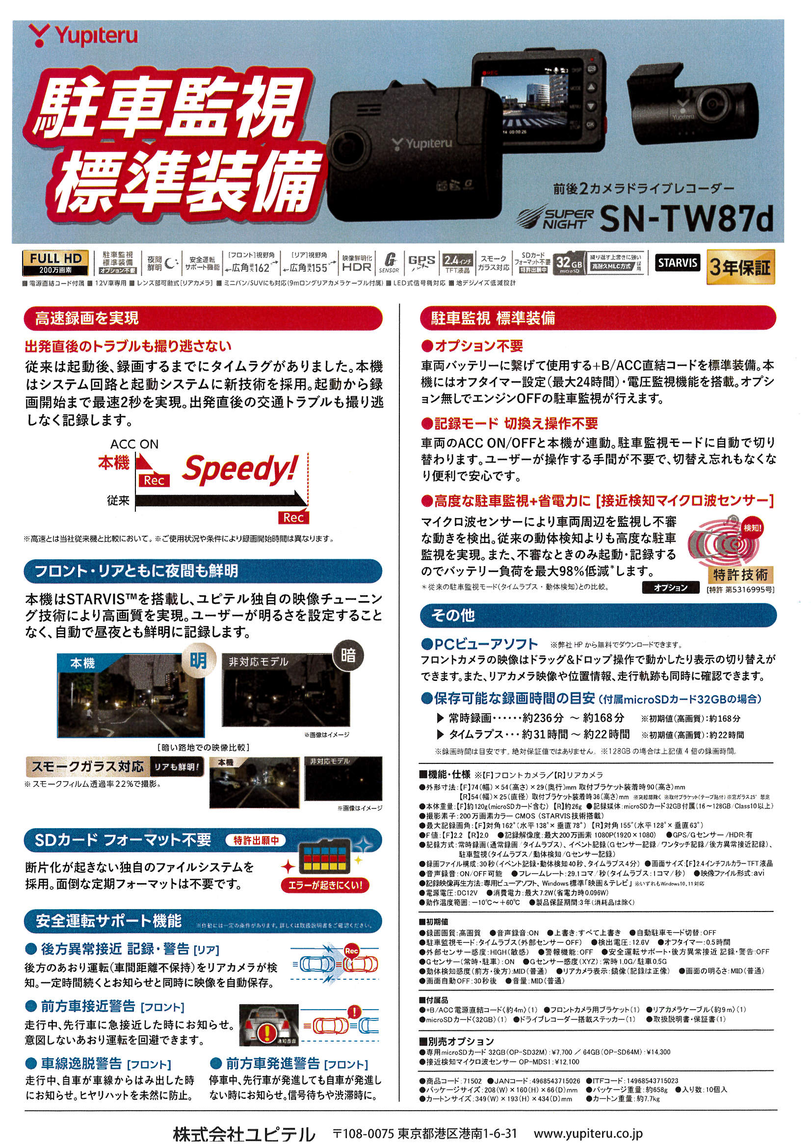 『SN-TW87d』指定店専用モデル♪ 前後2カメラを新発売…