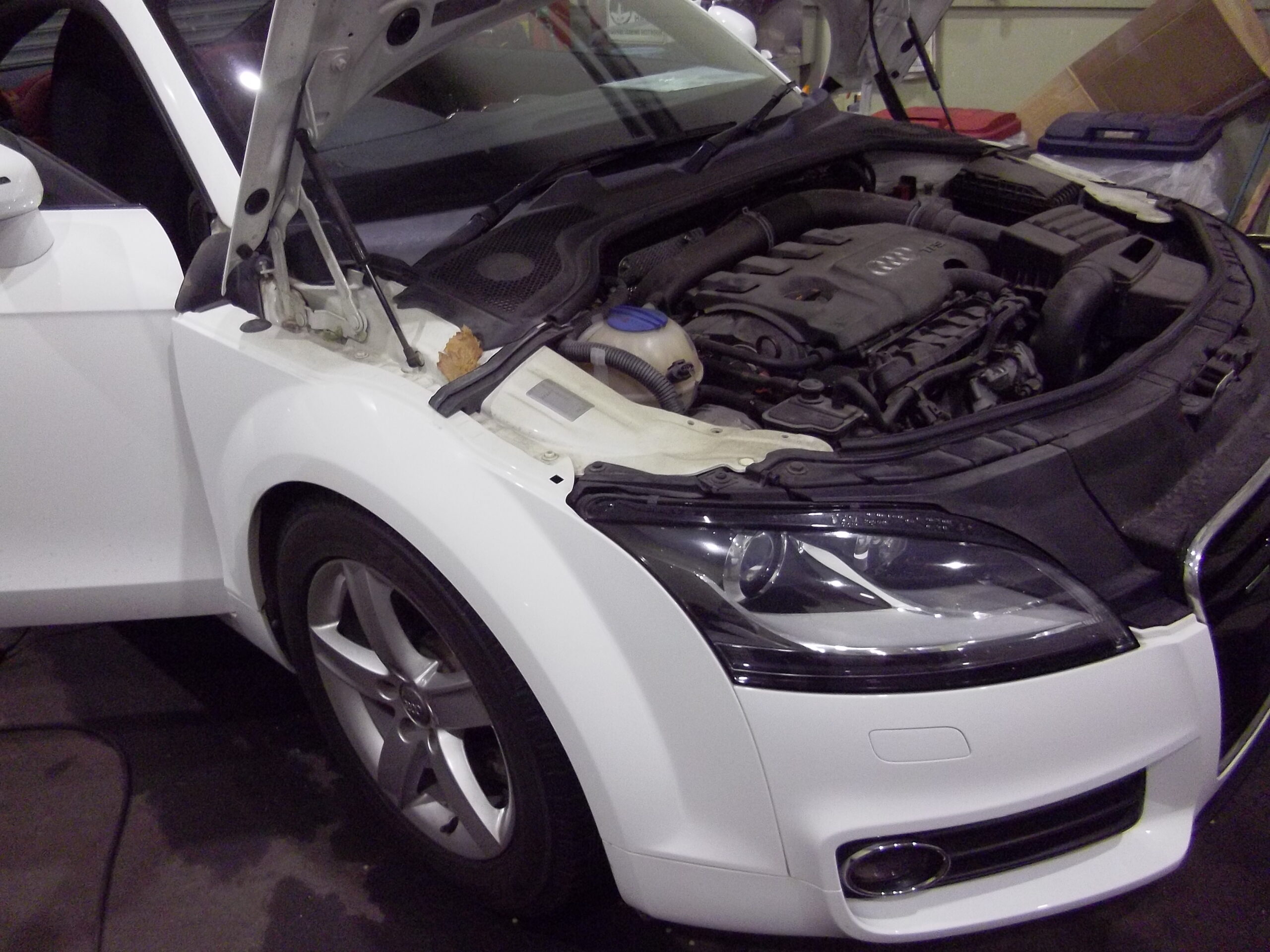 冷却水警告灯点灯でご入庫で、点検する為フェンダーカバーですと…